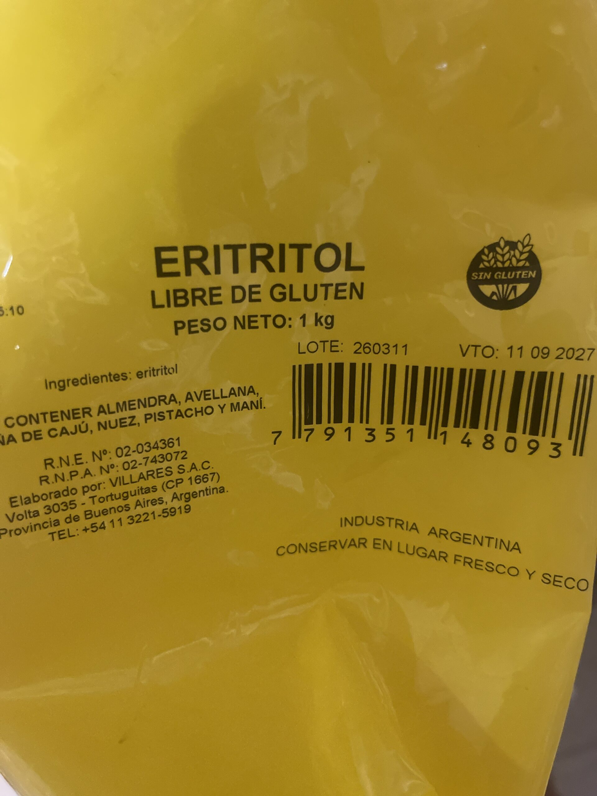 Eritritol Puro en Polvo SIN TACC fraccionado x 200 grs cantidad