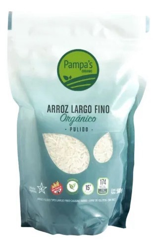 Arroz Largo Fino Pulido Doypack x  500 grs PAMPA’S ORGANICArroz Largo Fino Pulido Doypack x 500 grs PAMPA’S ORGANIC