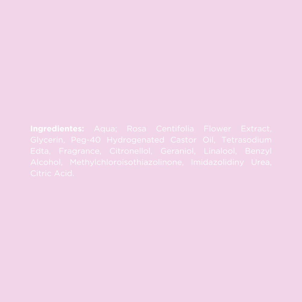 Con solo una aplicación, asegura un aroma refrescante por veinticuatro horas. Inspirada en el poder y la suavidad de las rosas, esta agradable fragancia revitaliza la piel cansada y opaca. La combinación única de extracto de rosas y otros componentes esenciales garantiza cuatro principales beneficios: limpieza, hidratación, tonificación y revitalización. Ideal para hidratar la piel antes de cualquier producto y para fijar el maquillaje.
