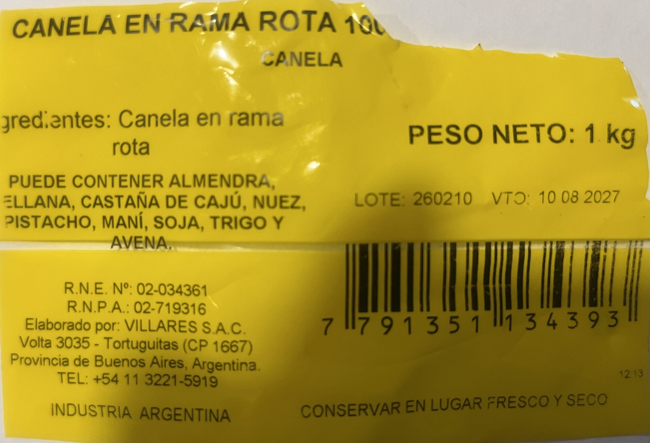 Canela en Rama Rota 100% QUILLINGS fraccionada x 50 grs cantidad