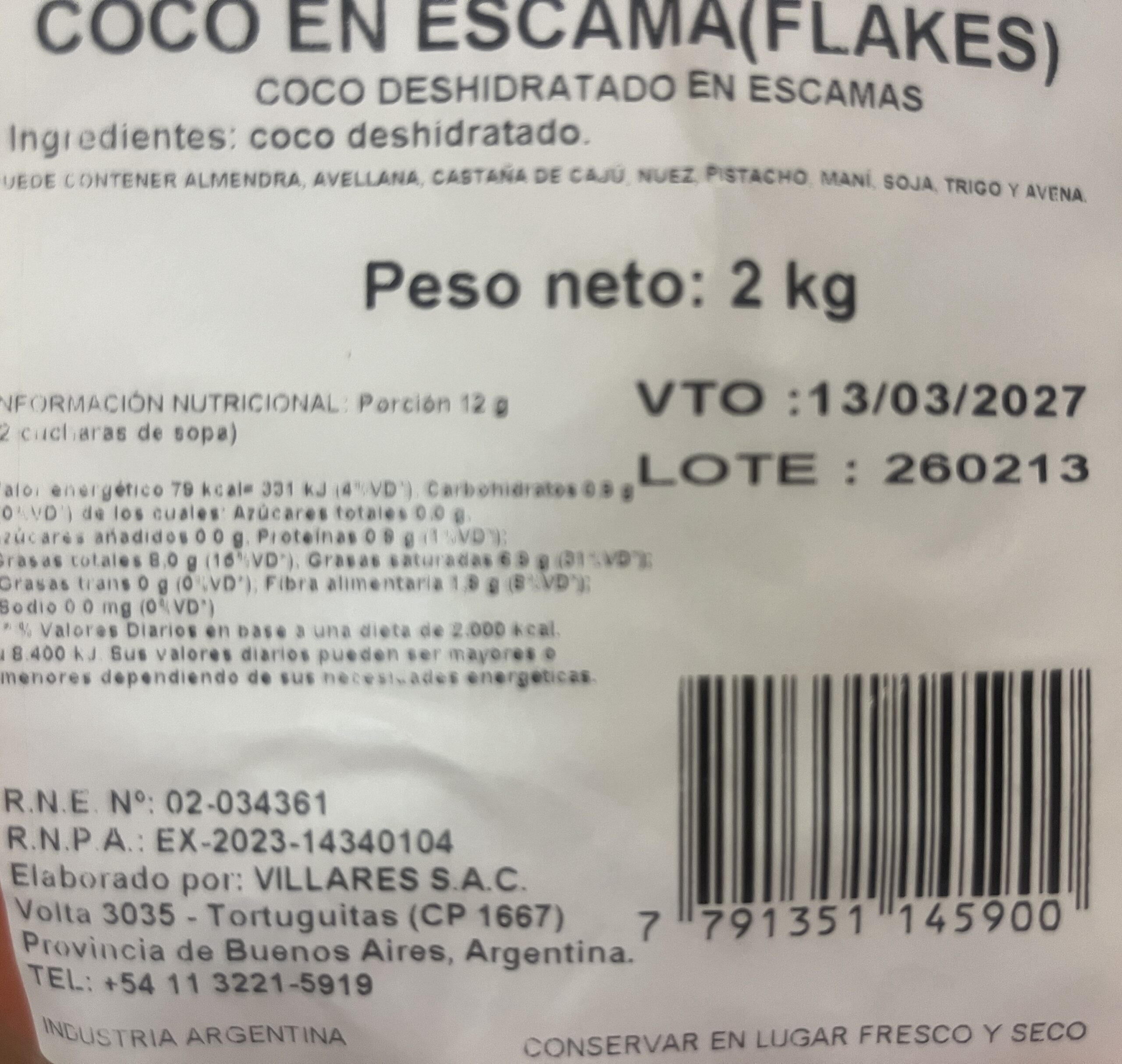 Coco en Escamas fraccionado x 500 grs EL PEONCITO