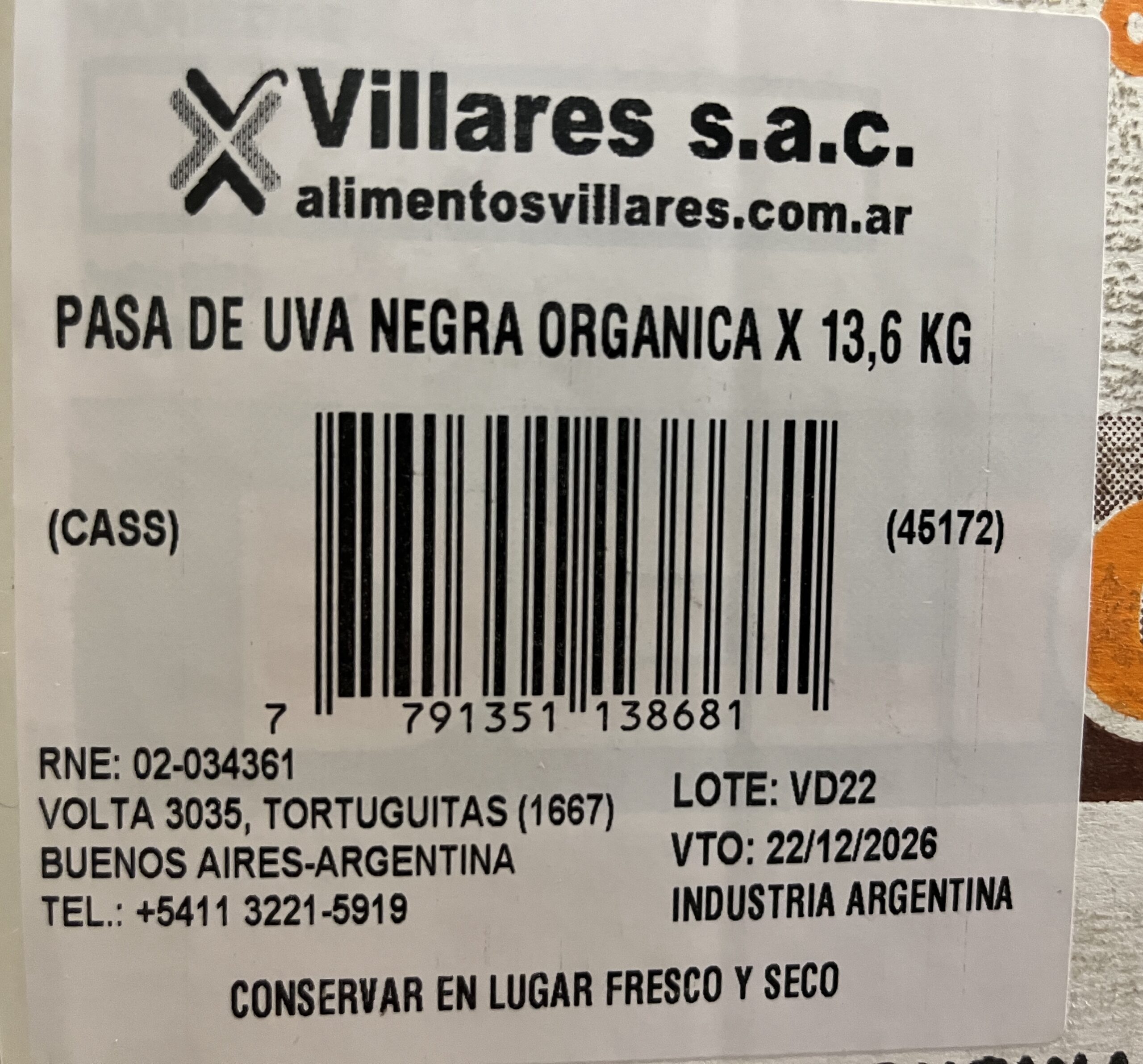 Pasas de Uva Negra fraccionadas x 1 kg CASSAB AHUN cantidad